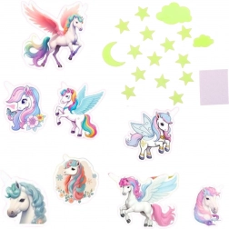 Doprajte deťom rozprávkový svet, ktorý ožije po zhasnutí svetiel. Sada obsahuje farebných jednorožcov a jemne nazeleno žiariace dekory, ktoré premenia každú izbu na útulné miesto na hranie aj spánok. Bezpečné, netoxické materiály spĺňajú európske normy kvality.