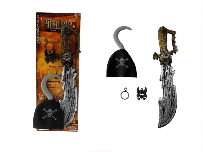 - Šabľa, kapitánsky odznak, pirátsky hák
