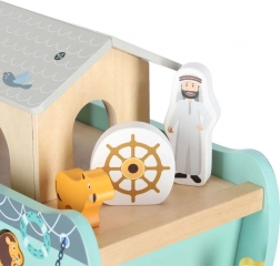 Zvieratká sa vkladajú do presne tvarovaných otvorov na boku lode. Deti si tak trénujú rozpoznávanie tvarov, trpezlivosť a jemnú motoriku prirodzeným a zábavným spôsobom.