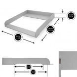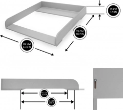 Tento sivý drevený prebaľovací pult premení vašu komodu na bezpečné a ergonomické miesto na každodennú starostlivosť o bábätko. Vďaka posuvnej prednej doske si pult ľahko prispôsobíte – posun až o 4 cm zabezpečí lepší dosah a komfort pri prebaľovaní.