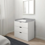 Montáž aj demontáž je otázkou chvíľky, takže pult môžete kedykoľvek zložiť a komodu používať opäť bežným spôsobom. Vďaka premysleným rozmerom 80 × 78 × 10 cm sedí na vybrané modely komôd IKEA a poskytuje dostatok priestoru pre prebaľovaciu podložku aj nevyhnutné potreby.