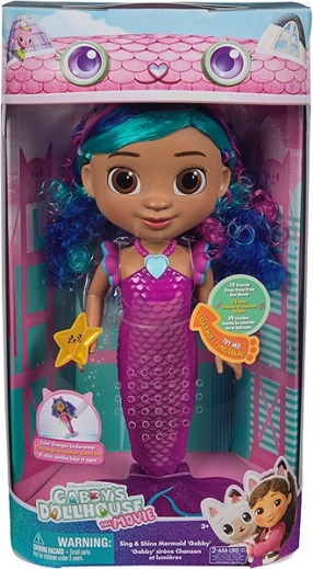 Morská víla Gábika z filmu Gábikin čarovný domček prináša deťom prepojenie svetiel, zvukov a vodných efektov. Stlačte srdiečkový náhrdelník a užite si svetelné efekty a 14 autentických zvukov a fráz. Chvost bábiky navyše v teplej vode mení farbu, takže každé kúpanie či vodná hra je plná prekvapení.
