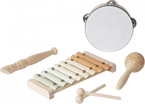 - Kompletný set: tamburína, rumba guľa, flauta, xylofón + 2 paličky