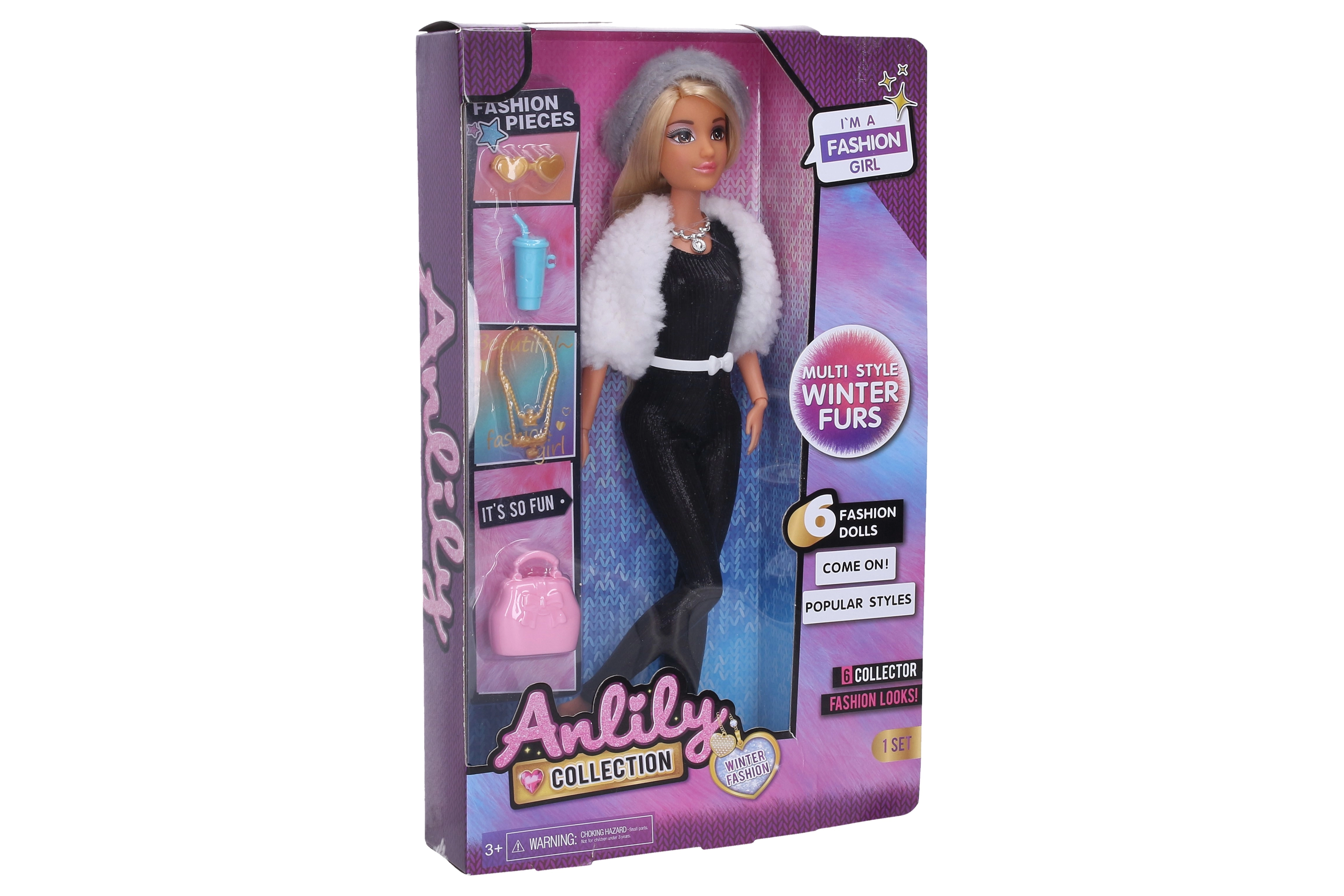Štýlová bábika s bohatou sadou doplnkov na kreatívne hranie. Obsahuje kabelku, náhrdelník, pohárik a slnečné okuliare. Výška bábiky 29 cm – ideálna do malých detských rúk.