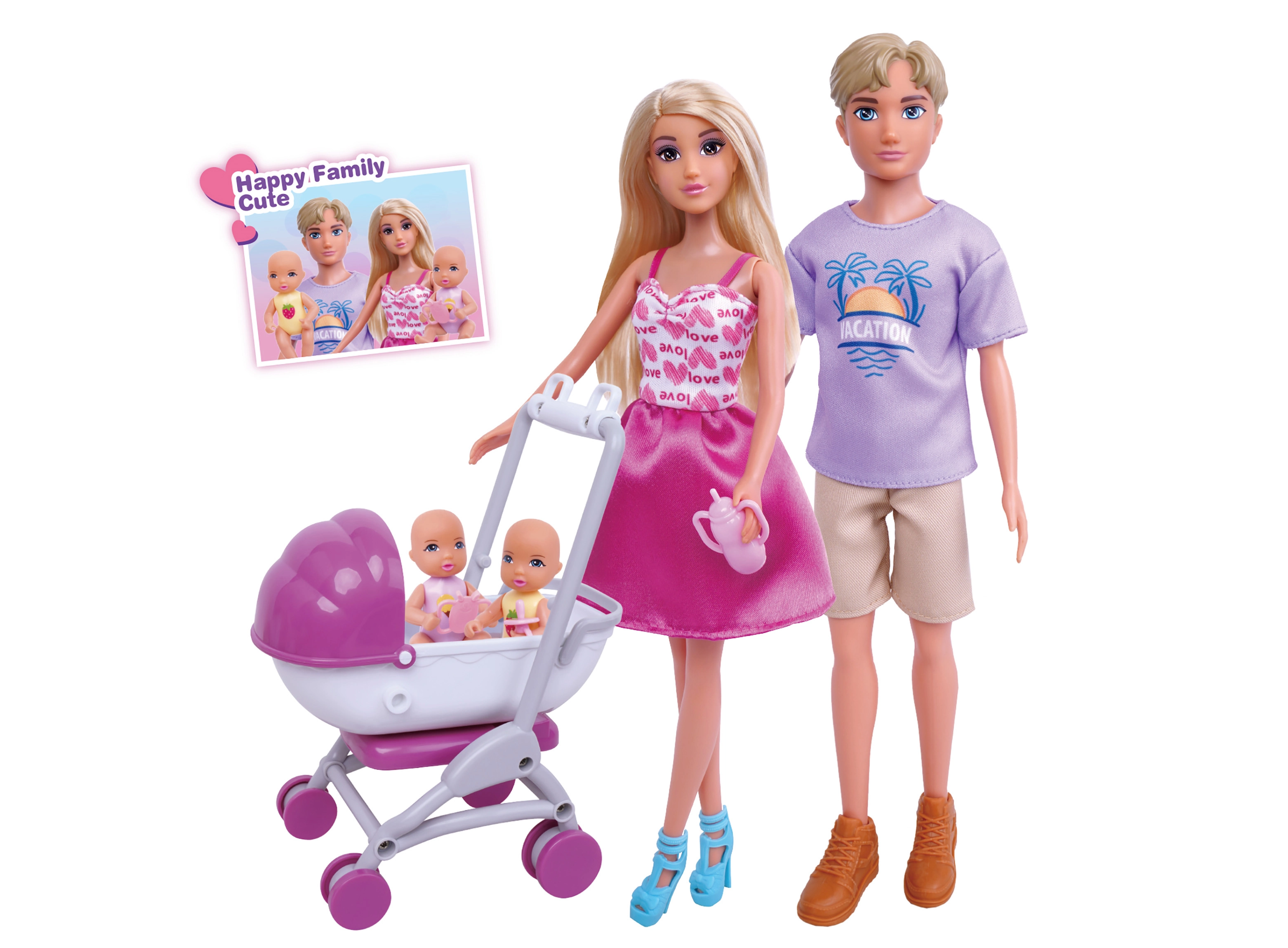 Užite si rodinné dobrodružstvá s touto roztomilou sadou – bábika s výškou 30 cm, jej manžel, dve bábätká a bohaté príslušenstvo. Súčasťou je multifunkčný kočík, ktorý možno ľahko prestavať z hlbokého na športový variant. Skvelá hračka na rozvoj fantázie, rolových hier a opatrovateľských zručností detí.