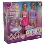 - Bábika, manžel, 2 bábätká, kočík, doplnky pre bábätká