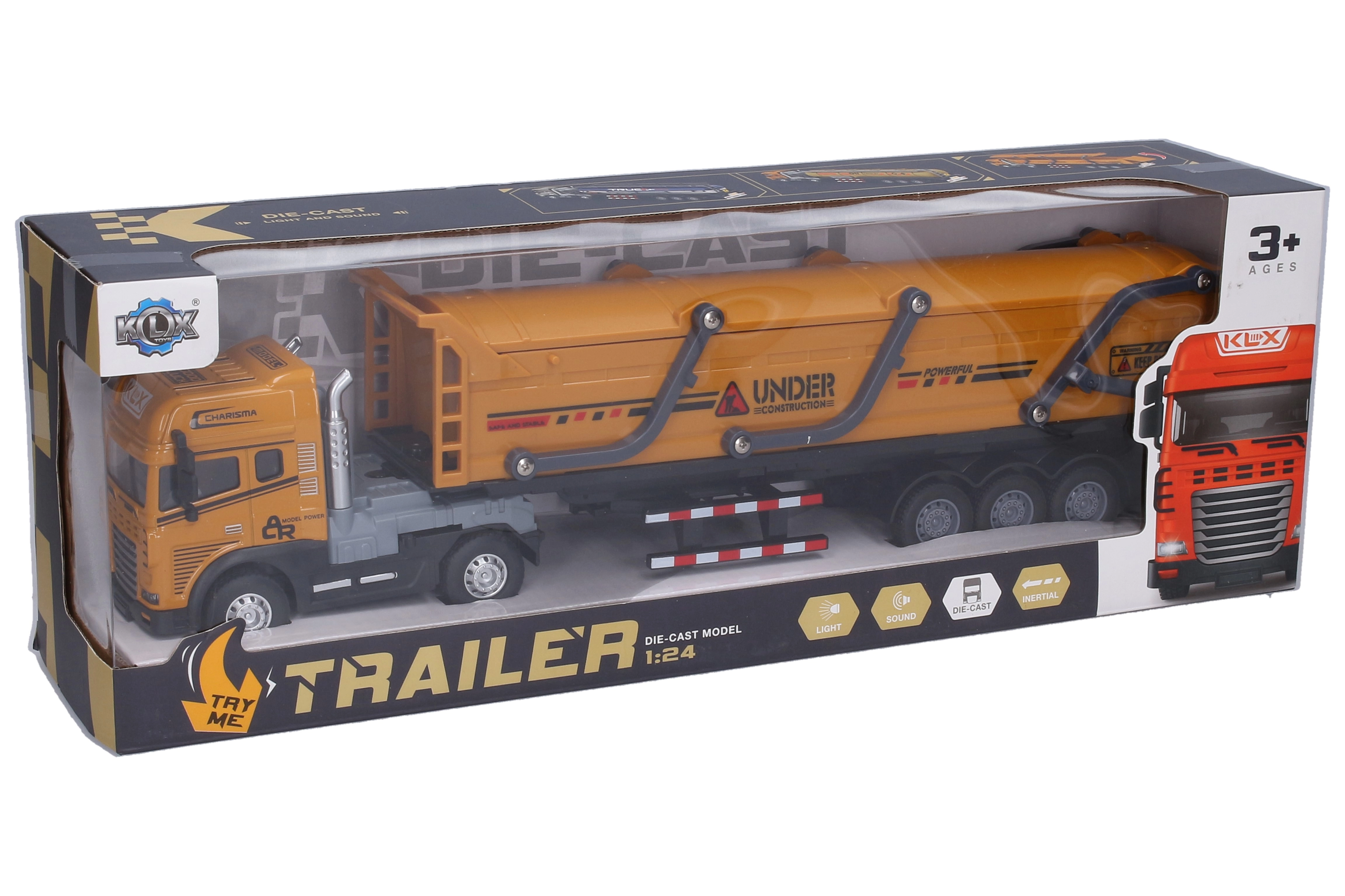 Užite si veľa zábavy s detailne spracovaným kovovým ťahačom so sklápacím vozidlom s dĺžkou 42 cm. Vďaka setrvačníku sa vozidlo rozbehne po ľahkom postrčení a realistické svetelné a zvukové efekty umocnia herný zážitok. Aktivácia efektov prebieha jednoducho pohybom predných kolies.