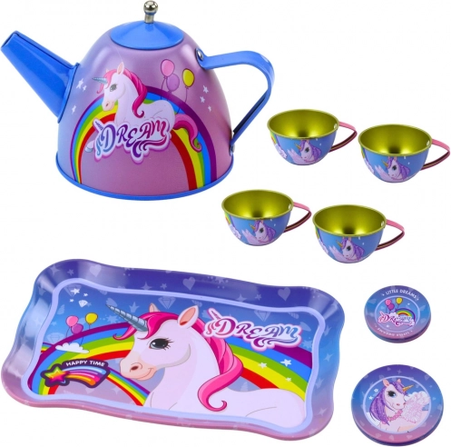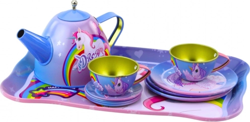 Táto detská čajová sada s nežným motívom jednorožca premení každé popoludnie na malé slávnostné stretnutie. Vďaka kovovému prevedeniu je odolná voči poškodeniu a príjemne ľahká do detských rúk. Skvelo sa hodí ako darček pre malých hostiteľov aj hostiteľky, ktorí milujú rolové hry.