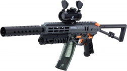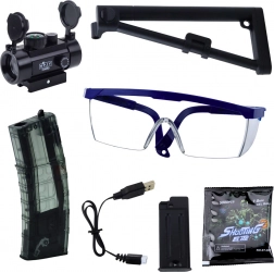 Model MK7 poteší každého, kto miluje akciu. Vďaka akumulátoru 7,4 V Li je pripravený na dlhú hru bez zbytočných prestávok. Vymeniteľné zásobníky umožňujú rýchlu výmenu munície, zatiaľ čo optický zameriavač pomáha k presnejším zásahom. Skladacia pažba dodáva zbrani taktický charakter a pohodlné prispôsobenie hráčovi.