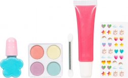 Kozmetické produkty sú navrhnuté pre citlivú detskú pokožku – dermatologicky testované, bezpečné a nedráždivé. Lak na nechty vytvára zlupovaciu vrstvu pre jednoduché odstránenie, očné tiene sa ľahko zmývajú teplou vodou a mydlom. Celá sada je 100 % vegánska a cruelty-free.