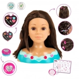 Súčasťou je praktické srdiečkové puzdro so základom líčenia – lesk na pery, očné tiene a lícenka – a tiež bohatá sada kaderníckych doplnkov pre nekonečné variácie účesov. Skvelá hračka na rozvoj kreativity, fantázie a koordinácie ruka–oko.