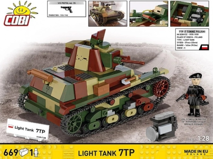 Postavte si ikonický poľský ľahký tank 7TP v mierke 1:28 zo stavebnice s 669 dielikmi a figúrkou veliteľa. Model vznikol v spolupráci s Múzeom poľského vojska, ponúka realistickú kamufláž, otočnú vežu, funkčné pásy a trvalé potlače bez nálepiek. Skvelé pre fanúšikov histórie, zberateľov aj staviteľov.