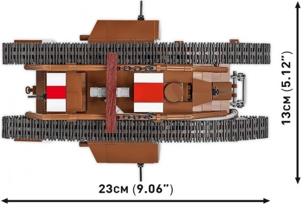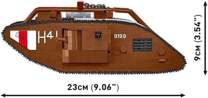 Tento precízne spracovaný model legendárneho britského tanku MARK V (Male) vychádza z autentického múzejného kusu č. 9199 z The Tank Museum v Bovingtone. Vďaka mierke 1:35 skvele ladí s figúrkami a ďalšími modelmi COBI. Trvalé potlače bez nálepiek, funkčný pásový pohon a detailné spracovanie z neho robia atraktívny kúsok do zbierky.