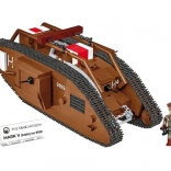 Postavte si ikonický britský tank MARK V (Male) v mierke 1:35 z 844 kvalitných dielov COBI. Model ponúka pohyblivé pásy, otočné delá, otváracie poklopy a figúrku britského dôstojníka. Ideálne pre milovníkov vojenskej histórie a zberateľov stavebníc.