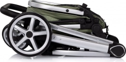 Ľahký hliníkový rám s odpružením všetkých kolies, prepojená zadná brzda a 5-bodový pás s mäkkými polstrami zaistia pokoj a bezpečie na každej ceste.