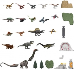 Súčasťou je 18 mini dinosaurov a 4 dieliky prostredia. Deti ľahko postavia bránu, skaly a stromy a zahrajú si svoje obľúbené príbehy JURASSIC WORLD.