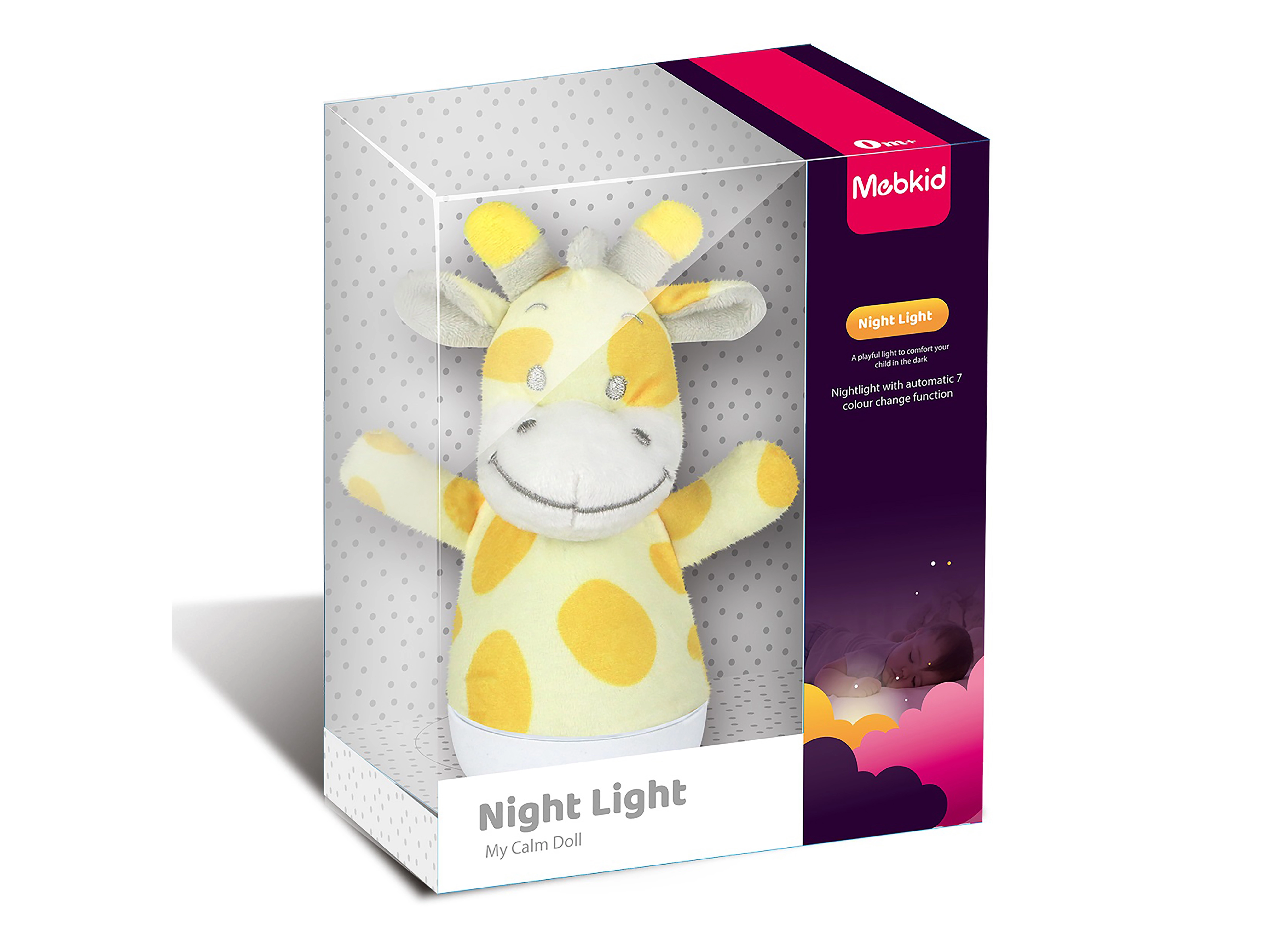 Táto mäkučká plyšová žirafa slúži ako upokojujúce nočné svetlo, ktoré jemne rozžiari detskú izbu. Automaticky sa meniace farebné svetielko (7 farieb) vytvára príjemnú atmosféru na ľahké zaspávanie.