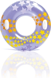 Nafukovací kruh INTEX s hravou hviezdičkovou témou je ideálny na letné vodné radovánky. Vďaka priemeru 91 cm poskytuje pohodlnú oporu a dve integrované držadlá pre istejší úchop a lepšiu ovládateľnosť vo vode. Kvalitný materiál a precízne spracovanie zaisťujú dlhú životnosť a bezpečné používanie.