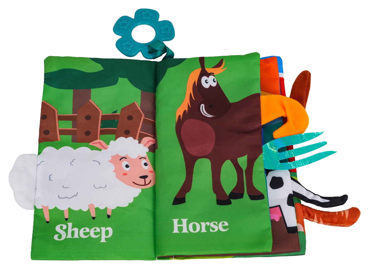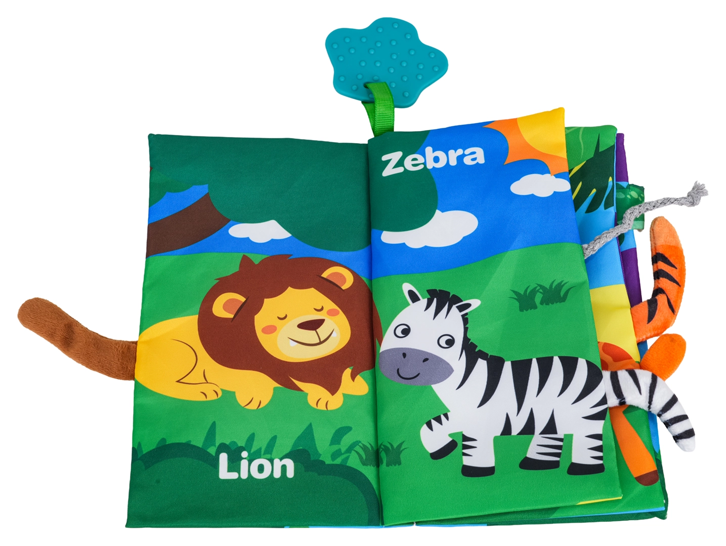 Každá knižka má integrované hryzadlo/klip na jednoduché pripnutie na kočík či autosedačku. Strany sú mäkké, odolné a vodeodolné, takže ich možno jednoducho utrieť. Vďaka ľahkej konštrukcii sa dobre držia aj tým najmenším ručičkám a lákajú k objavovaniu textúr a zvukov.
