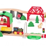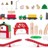 Drevená vláčkodráha Život na farme prináša deťom autentický svet farmy s vláčikom, koľajnicami a tematickými doplnkami. Deti si môžu vytvárať vlastné príbehy, rozvíjať koordináciu ruka–oko a učiť sa základným princípom cause–effect pri posúvaní vláčika po koľajniciach.