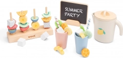 Otvoríte deťom svet fantázie s touto drevenou sadou na letnú párty. Malí hostitelia od 3 rokov si môžu pripraviť osviežujúce limonády, tvoriť farebné ovocné špízy a usporiadať vlastný stánok s občerstvením. Sada podporuje jemnú motoriku, rozlišovanie farieb aj spoluprácu a je vyrobená z dreviny z udržateľných zdrojov.