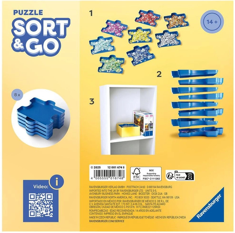 Uľahčite si skladanie puzzle s praktickým pomocníkom od značky Ravensburger. Tento šikovný triediaci systém ponúka šesť stohovateľných misiek v tvare dielikov, ktoré umožnia prehľadné triedenie podľa tvaru aj farby. Priehradky možno prepojiť k sebe a po dokončení skladania ich jednoducho uložiť na seba a vložiť do krabice – dieliky sa nestratia a všetko zaberie menej miesta.