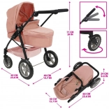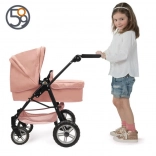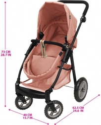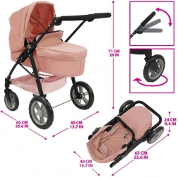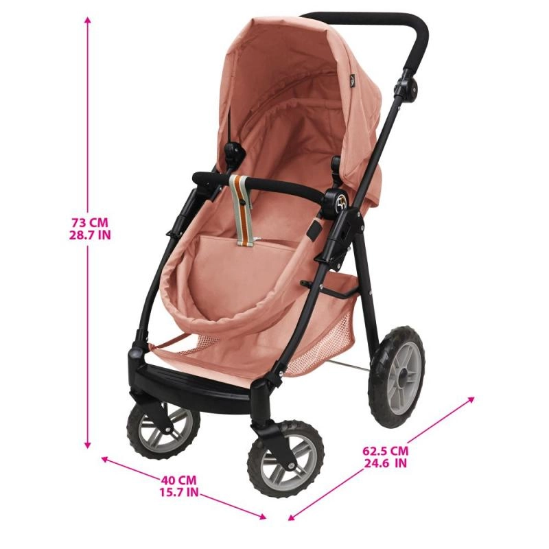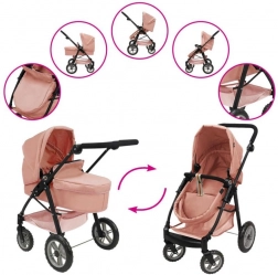 Štýlový kočík pre bábiky 2v1 v ružovom prevedení ponúka luxusné spracovanie, odnímateľné sedadlo a možnosť premeny na športový kočík. Vďaka nastaviteľnej rukoväti, otočnému prednému kolesu a veľkému košu je ideálny pre malé mamičky. Vhodný pre bábiky do cca 53 cm.