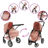 Ružový kočík pre bábiky 2v1 je skvelou voľbou na každodenné hranie. Luxusné prevedenie s odnímateľným sedadlom umožňuje ľahko premeniť hlboký kočík na športovú verziu. Pribalená strieška a kryt na nožičky udržia bábiku v pohodlí za každého počasia.