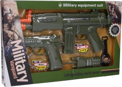 Kompletný vojenský set pre malých dobrodruhov obsahuje samopal, pištoľ, odznak, vysielačku a hodinky. Hračka vydáva svetelné a zvukové efekty, ktoré umocnia zážitok z hry. Samopal je napájaný 2× AA batériami (súčasť balenia), takže sa deti môžu začať hrať ihneď.