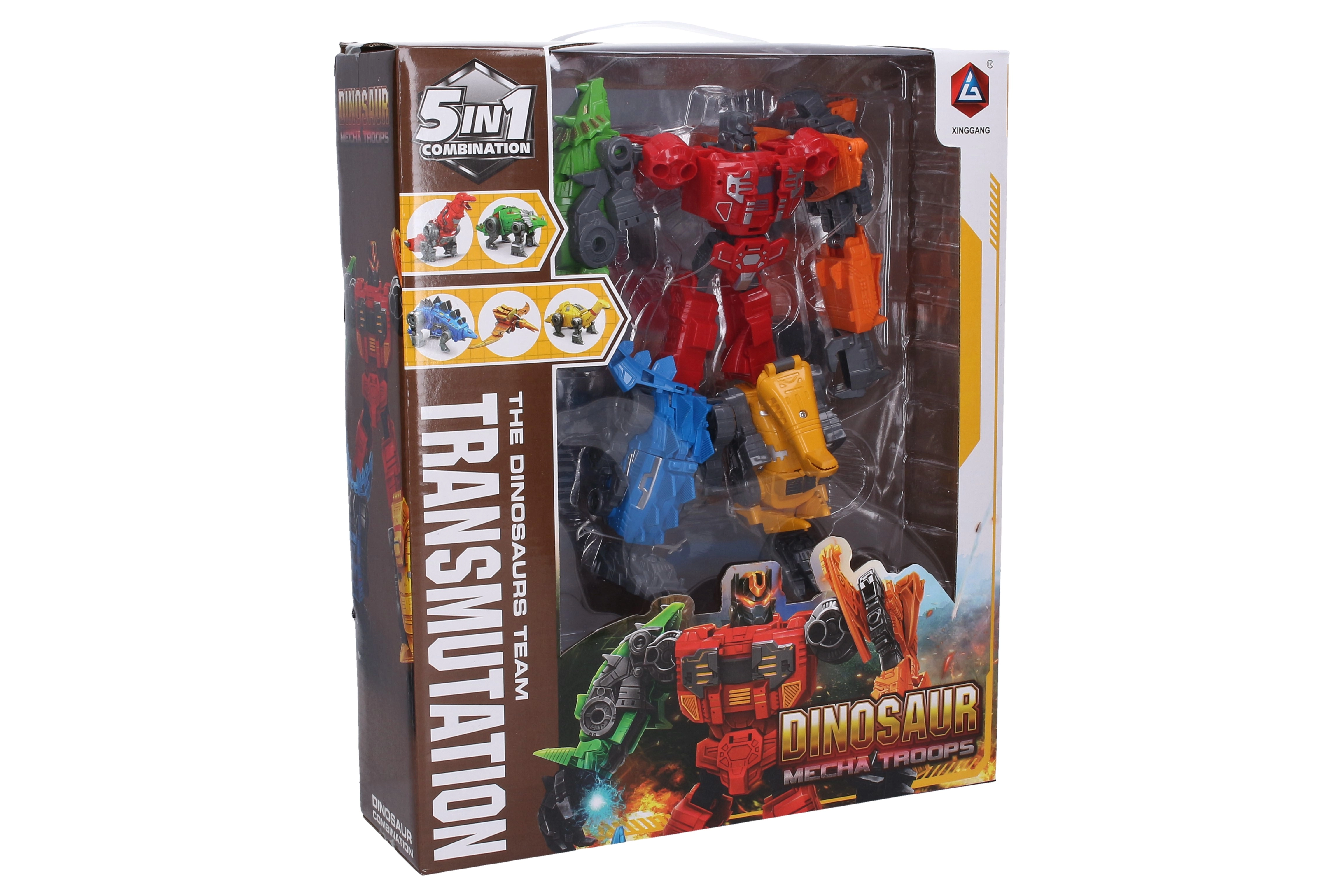 - 5v1 systém – päť menších robotov sa spojí do jedného veľkého dinorobota