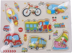 Táto kvalitná drevená vkladačka s dopravnými prostriedkami je ideálnou pomôckou pre deti, ktoré sa učia rozpoznávať tvary a objekty okolo seba. Dieliky sa ľahko uchopujú a zapadajú do vopred vyfrézovaných otvorov, čo podporuje koordináciu oko–ruka.