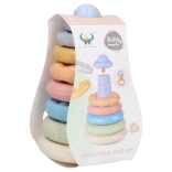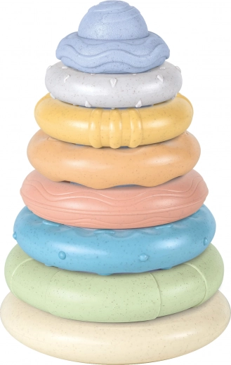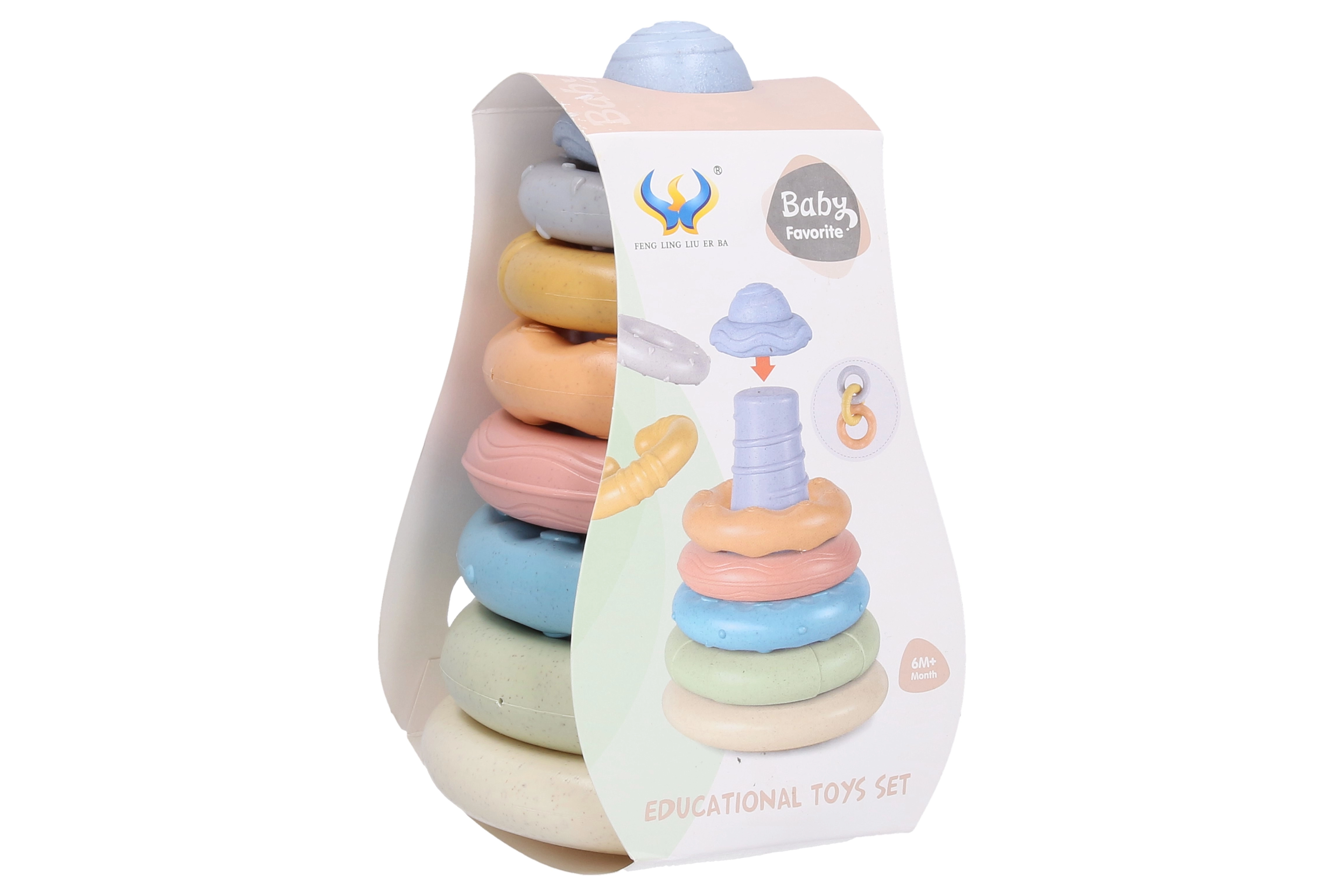 Farebná stavebnica pre najmenších: veža z krúžkov na tyči s výškou 20 cm rozvíja jemnú motoriku, logiku a koordináciu. Krúžky možno navliekať na tyč alebo ich spájať do reťaze pre ďalšiu zábavu.