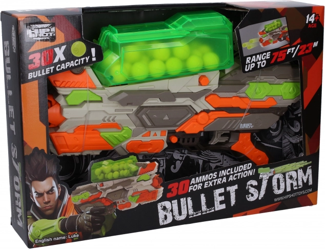 Pripravte sa na akčnú zábavu s pištoľou Bullet Storm, ktorá kombinuje bezpečnosť a výkon. Vďaka doletu až 23 metrov a zásobe 30 mäkkých penových guľôčok si užijete dlhé hodiny hier doma aj vonku. Robustné spracovanie a komfortný úchop zaisťujú pohodlné a isté ovládanie.