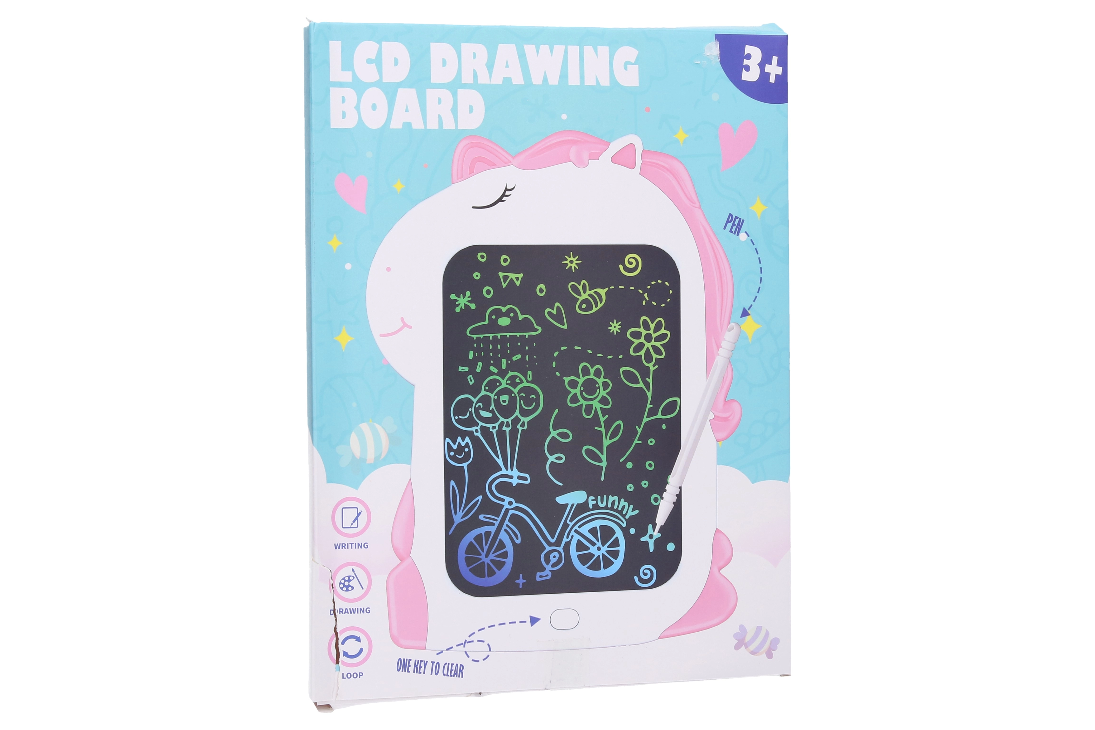 Objavte ľahkú a prenosnú kresliacu LCD tabuľku s roztomilým motívom jednorožca, ideálnu domov, do školy aj na cesty. Hladký LCD povrch zabezpečuje pohodlné písanie bez šmúh a šetrí oči vďaka zobrazeniu bez podsvietenia. Jediným tlačidlom všetko rýchlo vymažete a pomocou zadného prepínača aktivujete zámok proti nechcenému vymazaniu.