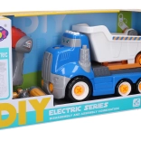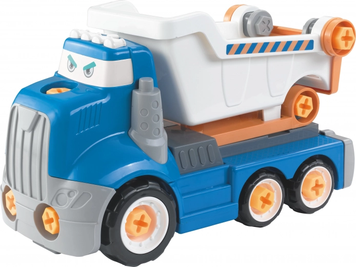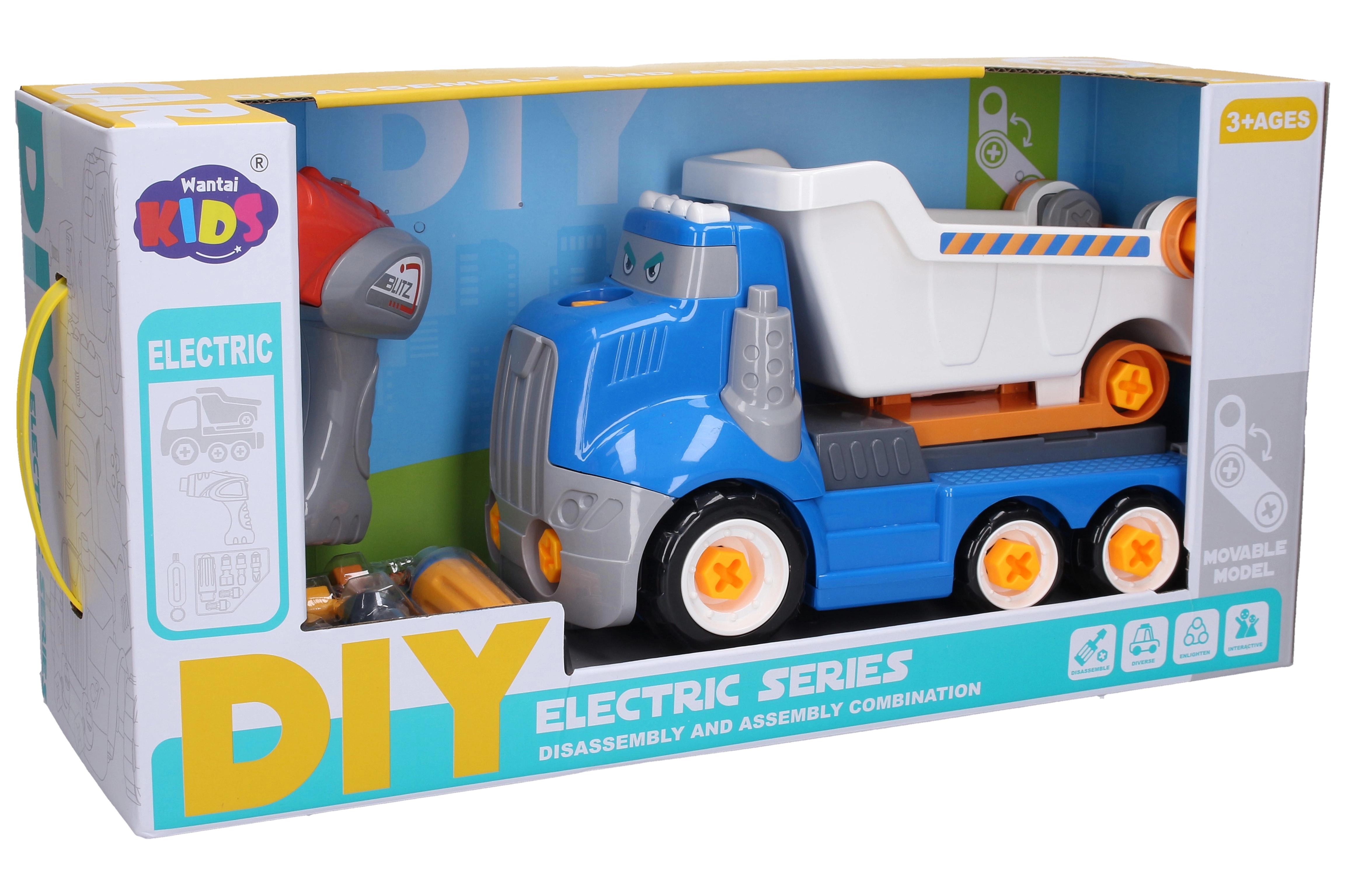 Postavte a riaďte vlastné stavebné vozidlo! Tento skrutkovací sklápač s dĺžkou 28 cm prichádza s elektrickým skrutkovačom a sadou náradia, takže si deti môžu auto rozobrať a znova poskladať. Vyberateľná elektrická jednotka sa dá vložiť priamo do auta pre jednoduchý elektrický pohon. Skvelá hra na rozvoj jemnej motoriky, trpezlivosti a technického myslenia.