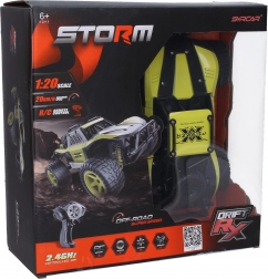 Ovládanie je intuitívne vďaka pištoľovému ovládaču, ktorý ponúka presné riadenie a plynulú akceleráciu. S rýchlosťou až 20 km/h si užijete dynamickú jazdu, zatiaľ čo prepínače ON/OFF na spodnej strane auta aj na ovládači uľahčujú používanie.