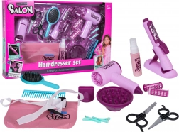 Objavte čaro vlastného salónu s týmto bohato vybaveným setom pre malé kaderníčky od 3 rokov. Nájdete v ňom funkčný detský fén s vymeniteľnými nadstavcami, svietiacu žehličku na vlasy, kulmu, hrebeň, kefu, sponky, natáčky, nožnice a praktickú ružovú tašku na opasok. Fén vydáva zvuk a má ľahký „závan“, žehlička svieti – ideálne na realistickú hru na kaderníctvo.
