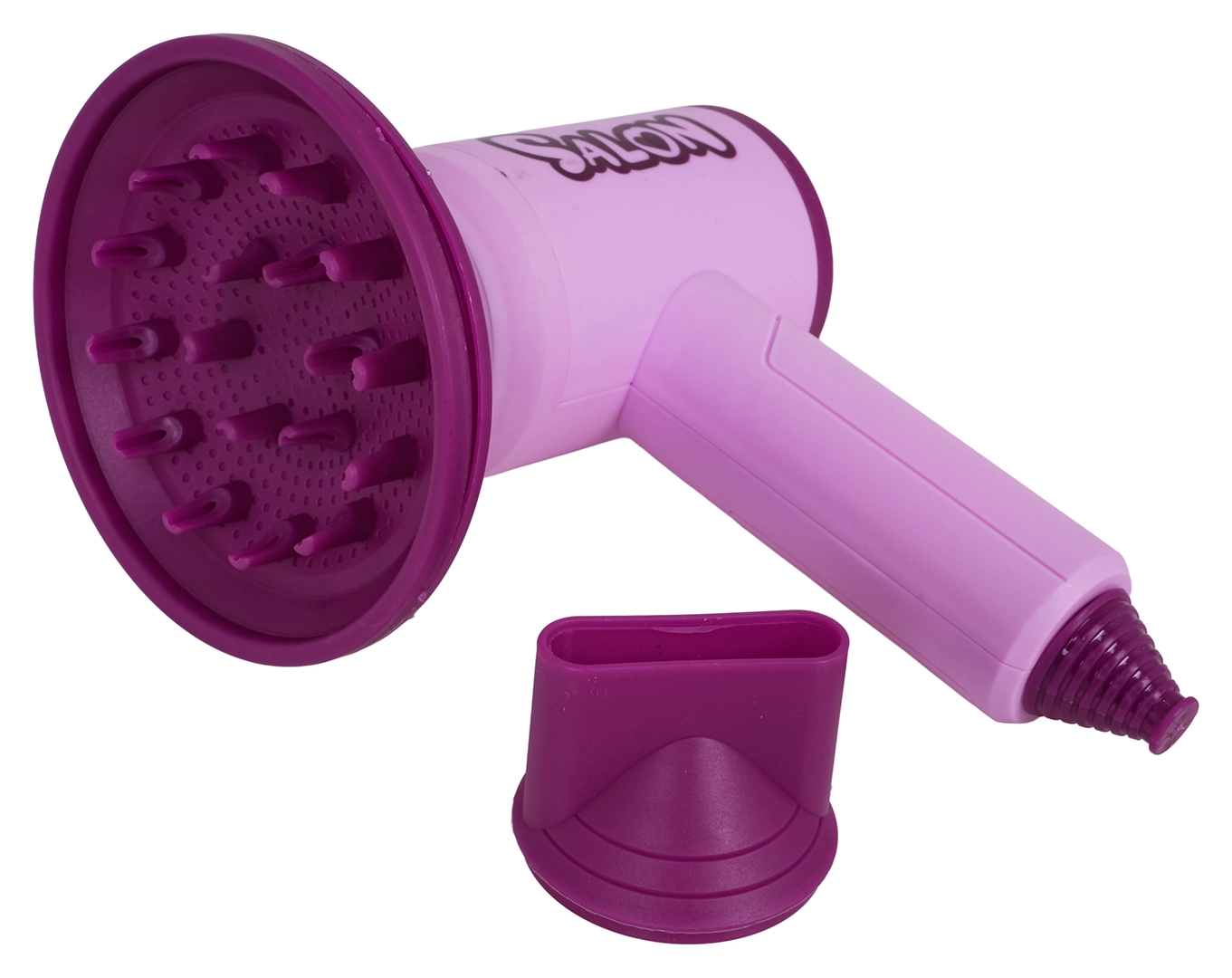 Detský fén ponúka zvuk sušenia a jemný prúd vzduchu pre realistickú hru. V balení nájdete difuzér aj koncentrátor pre rôzne „stylingové“ efekty.