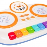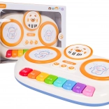 Objavte zábavné detské piano s dotykovou perkusnou časťou, ktoré hravo uvedie deti od 12 mesiacov do sveta hudby. Farebné klávesy, svietiace bubienky a až 6 rôznych zvukov, 10 veselých melódií a DJ režim podporujú kreativitu, rytmus aj koordináciu. Bezpečné prevedenie a jemné dotykové ovládanie zaistia pohodlnú a dlhú hru.