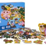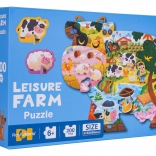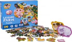 Zábavná sada puzzle s motívom farmy pre deti od 6 rokov. Po zložení vznikne obrázok v tvare kravičky s rozmermi 57,4 × 44 cm, doplnený o 2 samostatné dieliky so stojančekmi (ovečka a kravička). Puzzle rozvíjajú koncentráciu, logické myslenie a vizuálnu pamäť a zároveň príjemne ukľudňujú a uvoľňujú.