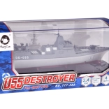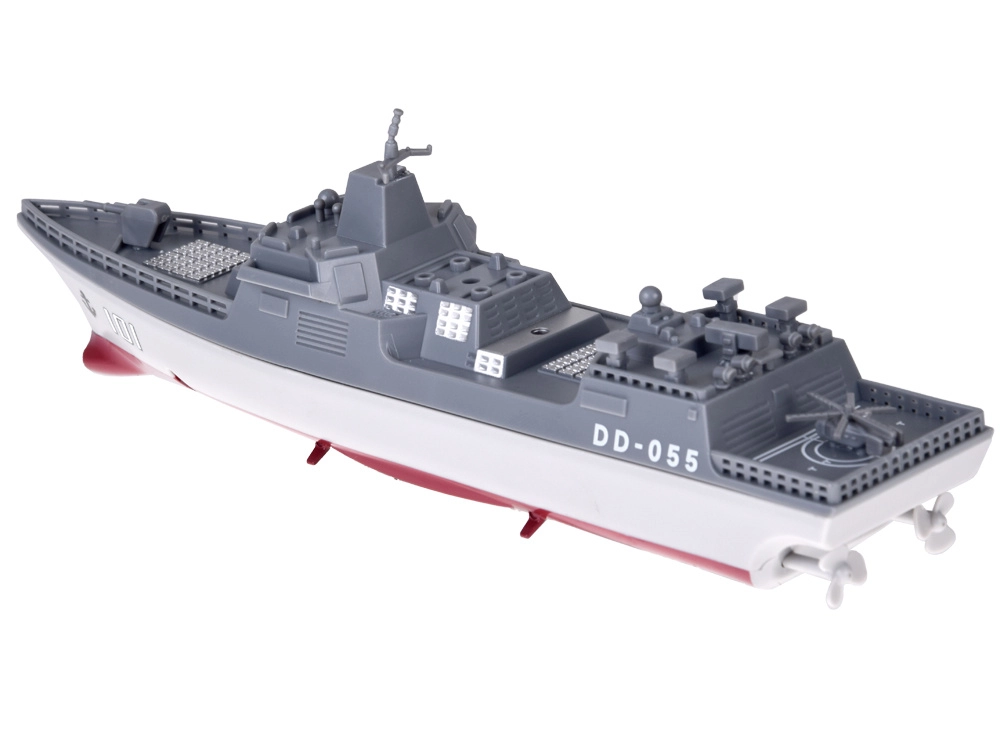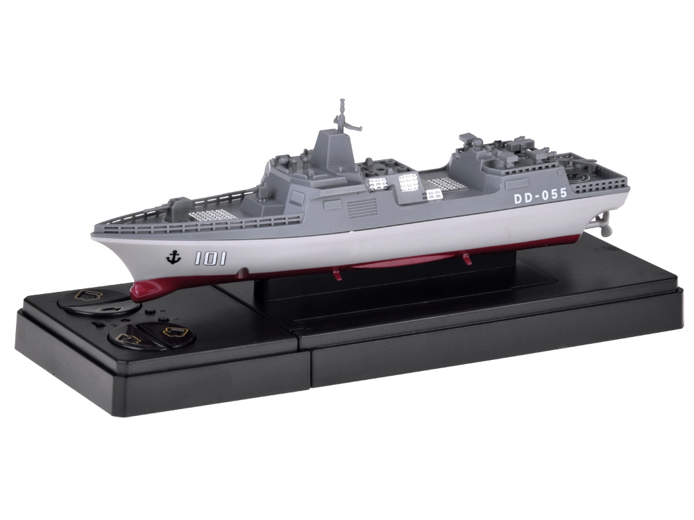 Objavte silu oceánov s modelom RC torpédoborca DD-055. Loď v šedo-červenej farebnej kombinácii verne napodobňuje moderný raketový torpédoborec a zaujme bohatými detailmi – od palubných prvkov až po pristávaciu plochu pre vrtuľník. Vďaka kompaktnej veľkosti sa skvele ovláda a zároveň vynikne na poličke v mini vitrínke, ktorá je súčasťou balenia.