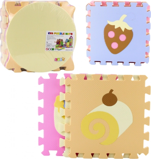 Táto edukatívna penová podložka je ideálna pre prvé krôčiky, lozenie aj každodenné hranie. Diely z mäkkej a pružnej EVA peny sa jednoducho prepájajú a umožňujú zostaviť komfortnú hraciu plochu alebo základné priestorové tvary ako nízka ohrádka. Pastelová paleta a motívy ako jahoda, ananás, cukrík či čerešne lákajú k objavovaniu farieb a tvarov.