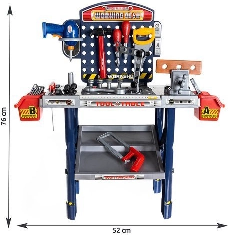 Súprava pre domácich majstrov obsahuje veľa prvkov, takže sa s ňou dieťa určite nebude nudiť.Náradie je ľahké a vhodné pre malé rúčky. Dielnička pre chlapcov výborne zlepšuje manuálnu zručnosť detí a zároveň ich učí presnosti, trpezlivosti a sústredenosti. Dielnička "Urob si sám" je hračka ideálna na individuálnu hru a zábavu so súrodencami, rovesníkmi a rodičmi. Hračka tiež učí dieťa udržiavať poriadok - skrutky a náradie majú svoje miesto. Materiál: plast