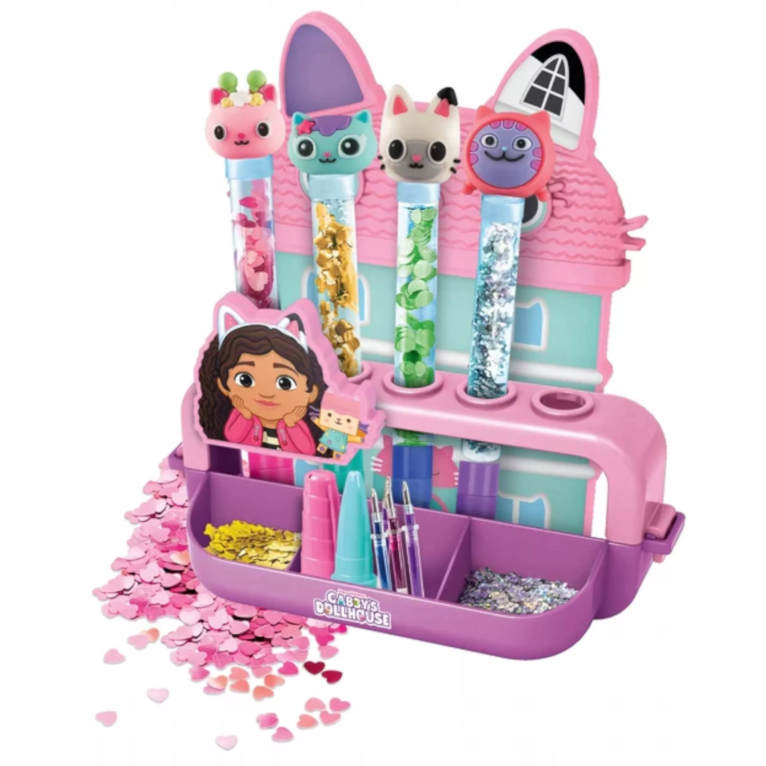 Vstúpte do kreatívneho sveta GABBY’S DOLLHOUSE a vytvárajte si vlastné trblietavé, farebné a jedinečné perá! Tento set od značky Clementoni podporuje kreativitu, rozvíja jemnú motoriku a ponúkne deťom hodiny zábavy pri personalizácii písacích potrieb pomocou trblietok, samolepiek a roztomilých motívov.