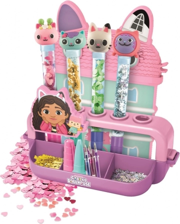 Objavte zábavnú „továreň“ na perá inšpirovanú svetom GABBY’S DOLLHOUSE. Deti si môžu navrhovať a zdobiť vlastné perá, kombinovať farby, trblietky a roztomilé mačacie motívy. Sada je ideálna pre malých tvorcov, ktorí milujú kreatívne projekty a chcú mať školské pomôcky podľa seba.