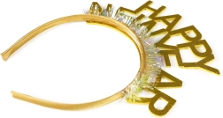 Štýlová párty čelenka v elegantnej zlatej farbe s trblietavým nápisom HAPPY NEW YEAR dodá vášmu outfitu sviatočný šmrnc. Ideálny doplnok na silvestrovskú oslavu, večierok aj tematické fotenie.