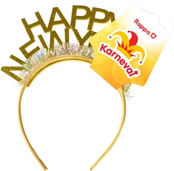 Dodajte svojej silvestrovskej noci žiarivý efekt. Zlatá čelenka s výrazným trblietavým nápisom HAPPY NEW YEAR je ľahká, pohodlná a skvele drží vo vlasoch. Okamžite vytvorí slávnostnú atmosféru a vynikne na fotografiách.