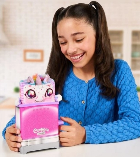Objavte kúzlo hry na kuchára s toastovačom Cookeez Makery, ktorý ukrýva prekvapenie – mäkkučkých, farebných a voňavých plyšákov v tvare raňajkových dobrôt. Stačí vložiť „krajček“ do slotu, stlačiť páčku a odhaliť voňavú maskotku z jednej zo 6 rôznych variantov.