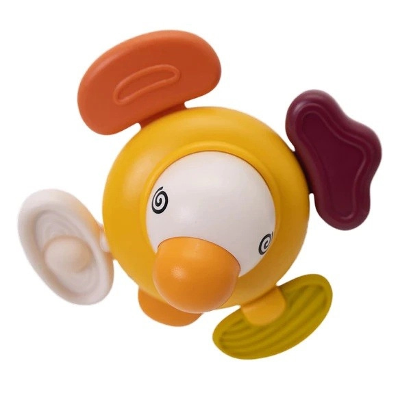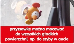 Vďaka prísavke kačičku ľahko pripevníte na hladké povrchy – napríklad na jedálenskú stoličku, stôl či okno v aute. Silikónové hryzátko uľaví pri prerezávaní zúbkov a otočné a posuvné prvky rozvíjajú koordináciu ruka–oko.