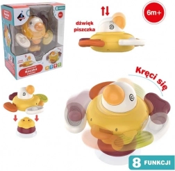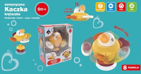 Táto rozkošná kačička ponúka až 8 zmyslových funkcií, ktoré zabavia a podporia rozvoj vášho bábätka už od útleho veku. Otáčanie, stláčanie, hrkanie aj pískanie poskytujú rozmanité podnety, ktoré stimulujú zmysly a motivujú dieťa k pohybu a skúmaniu.